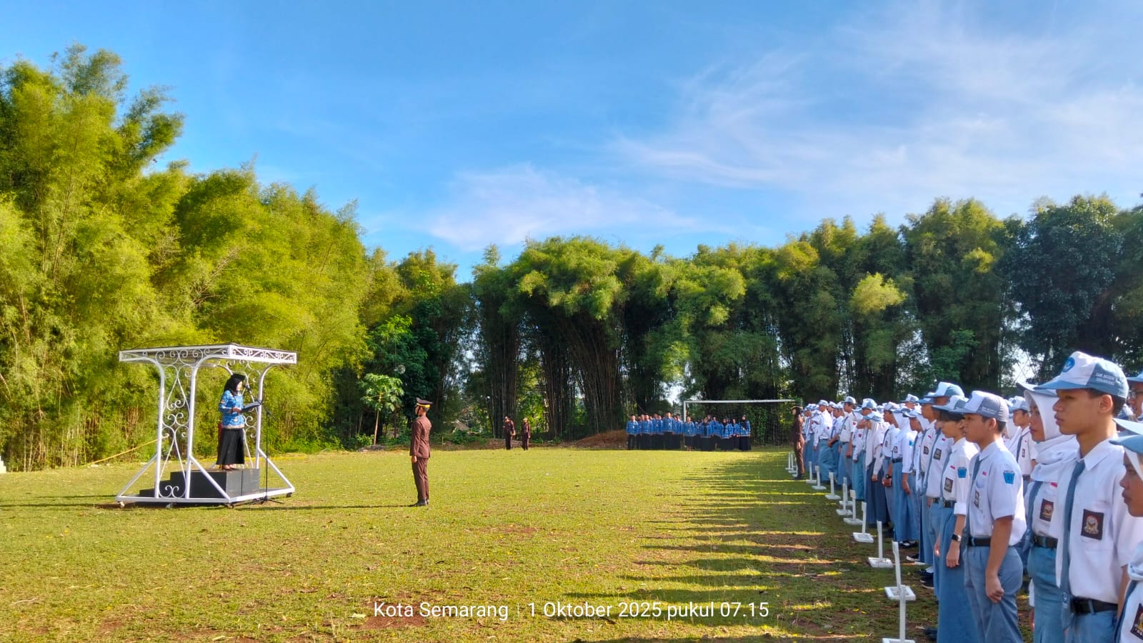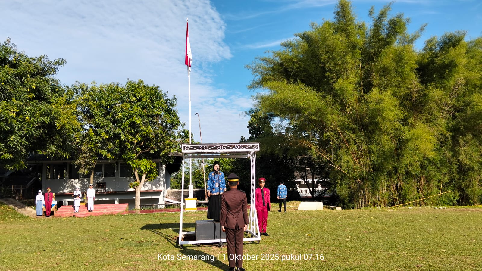 Semarang – Suasana pagi di lapangan Krida Kshetra SMK Negeri 11 Semarang, Rabu, 01 Oktober 2025, terasa lebih berbeda dari biasanya, karena hari ini melaksanakan upacara memperingati Hari Kesaktian Pancasila. Seluruh siswa, guru, hingga staff sekolah berkumpul untuk mengikuti upacara tersebut.