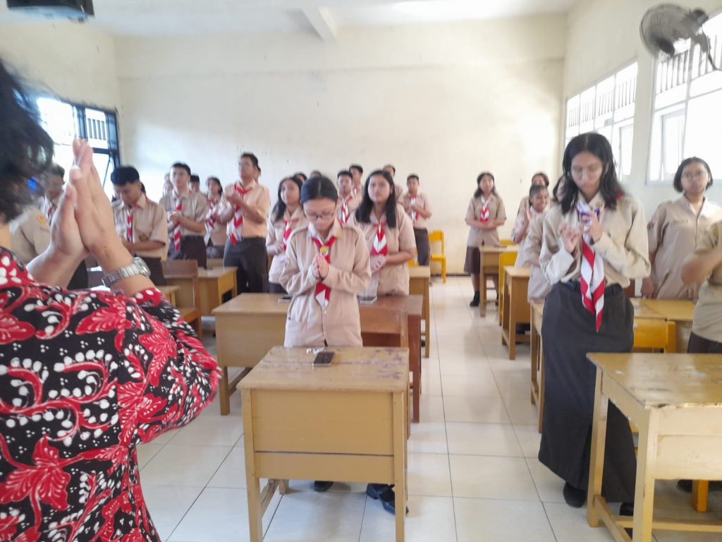 Di sisi lain, siswa-siswi kelas 12 berkumpul di lapangan Wirya Khesetra untuk melaksanakan kegiatan doa bersama. Kegiatan ini diadakan untuk melantunkan doa-doa dengan tujuan mempermudah para murid yang akan menjalankan TKA (Tes Kemampuan Akademik). Ibu Imro’atul Azizah S.Pd,. M.SI. memberi sambutan beserta nasehat dan motivasi untuk anak didiknya, bahwa usaha tidak akan mengkhianati hasil pada akhirnya. Maka dari itu beliau meminta agar mereka bersungguh-sungguh dalam belajar dan tak lupa selalu berserah diri kepada Tuhan. Secara terpisah siswa yang beragama Kristen Protestan, Katholik dan Buddha melaksanakan doa bersama. Inilah toleransi yang selalu dijunjung di SMK N 11 Semarang.