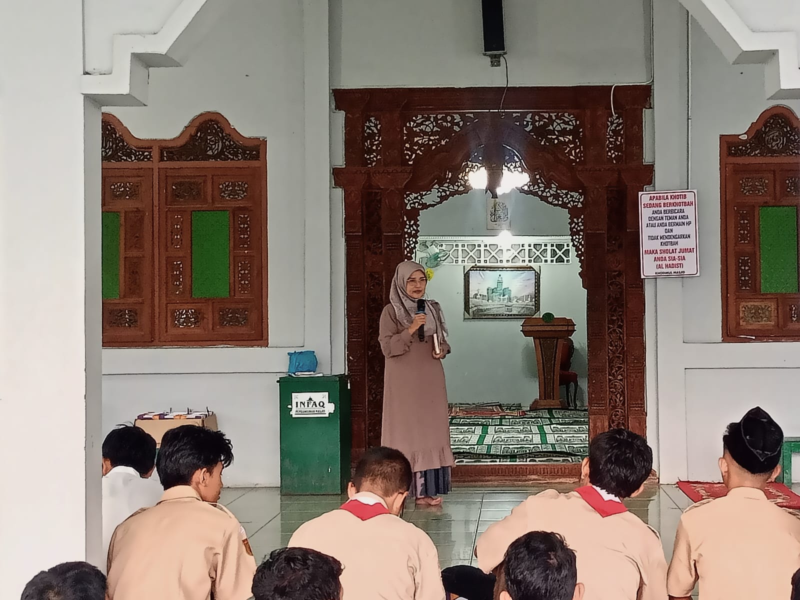 Rangkaian acara diawali dengan pembiasaan ibadah pagi bersama, meliputi sholat Dhuha 8 rakaat, pembacaan Asmaul Husna, tadarus surah Al Kahfi, tahlil, serta ditutup dengan doa dan sholawat.