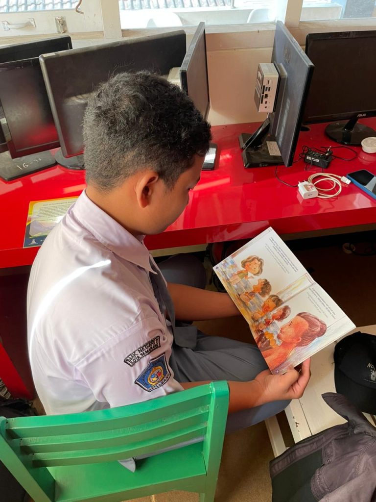 Saya bersyukur kegiatan giat pustaka waca di jurusan animasi terus dilakukan murid-murid. Hari ini, Senin, 2 Maret 2026, ketika para guru sedang mengikuti pembinaan dari kepala sekolah, murid-murid kelas X yang akan mengikuti pembelajaran dasar-dasar animasi di ruang laboratorium duduk dengan tenang sambil memegang buku untuk dibaca.