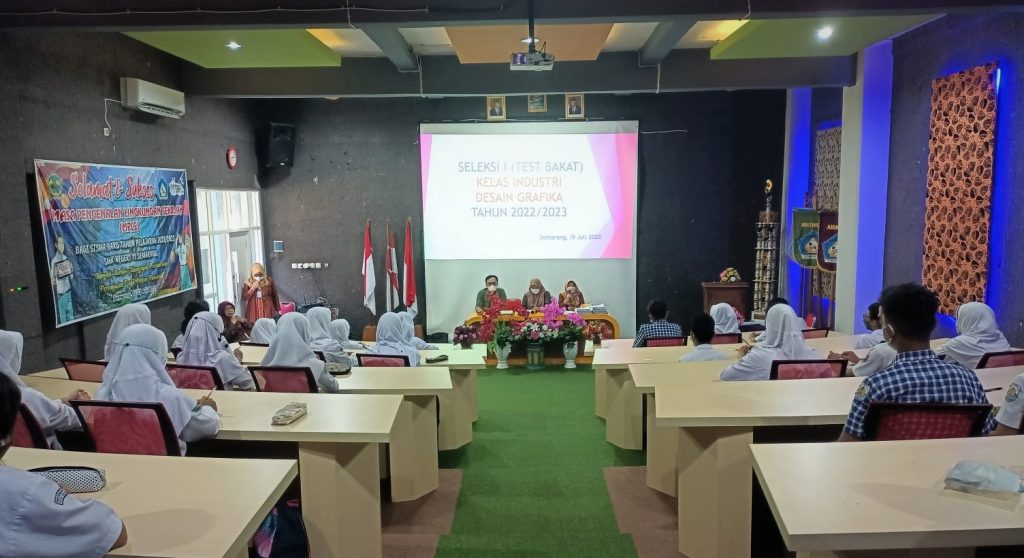 Pada hari Selasa Tanggal 19 Juli 2022 bertempat di Ruang Mini Teater SMK Negeri 11 Semarang dilaksanakan seleksi I (Test Bakat) Kelas Industri. Pada acara seleksi tahap I tersebut diikuti Bapak Ibu Guru Produktif Desain Komunikasi Visual dan 36 Siswa kelas X jurusan Desain Komunikasi Visual. Kelas Industri adalah sebuah pendekatan dalam proses pengelolaan pembelajaran […]
