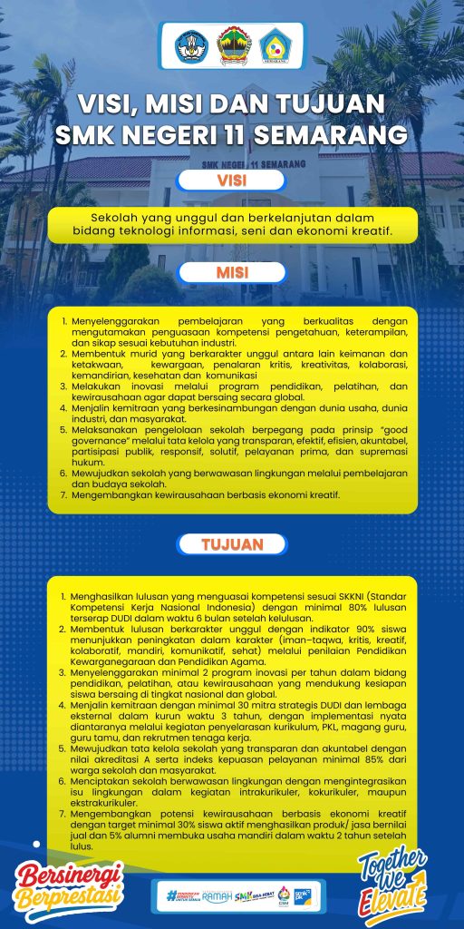 Sekolah yang unggul dan berkelanjutan dalam bidang teknologi informasi, seni dan ekonomi kreatif.